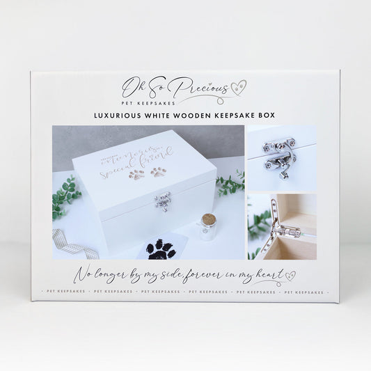 Personalised Paw Prints Square Luxury White Wooden Pet Memorial Photo Memory Box - 2 Sizes