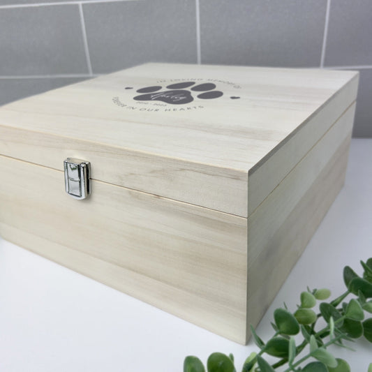 Personalised Pine Wooden Pet Name Memorial Memory Box - 3 Sizes (26cm | 30cm | 36cm)