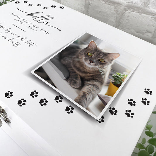Personalised Paw Prints Pet Memorial White Wooden Photo Memory Box - 3 Sizes (22cm | 27cm | 30cm)