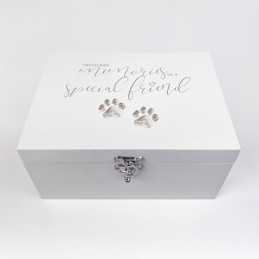 Personalised Paw Prints Pet Memorial White Wooden Photo Memory Box - 3 Sizes (22cm | 27cm | 30cm)