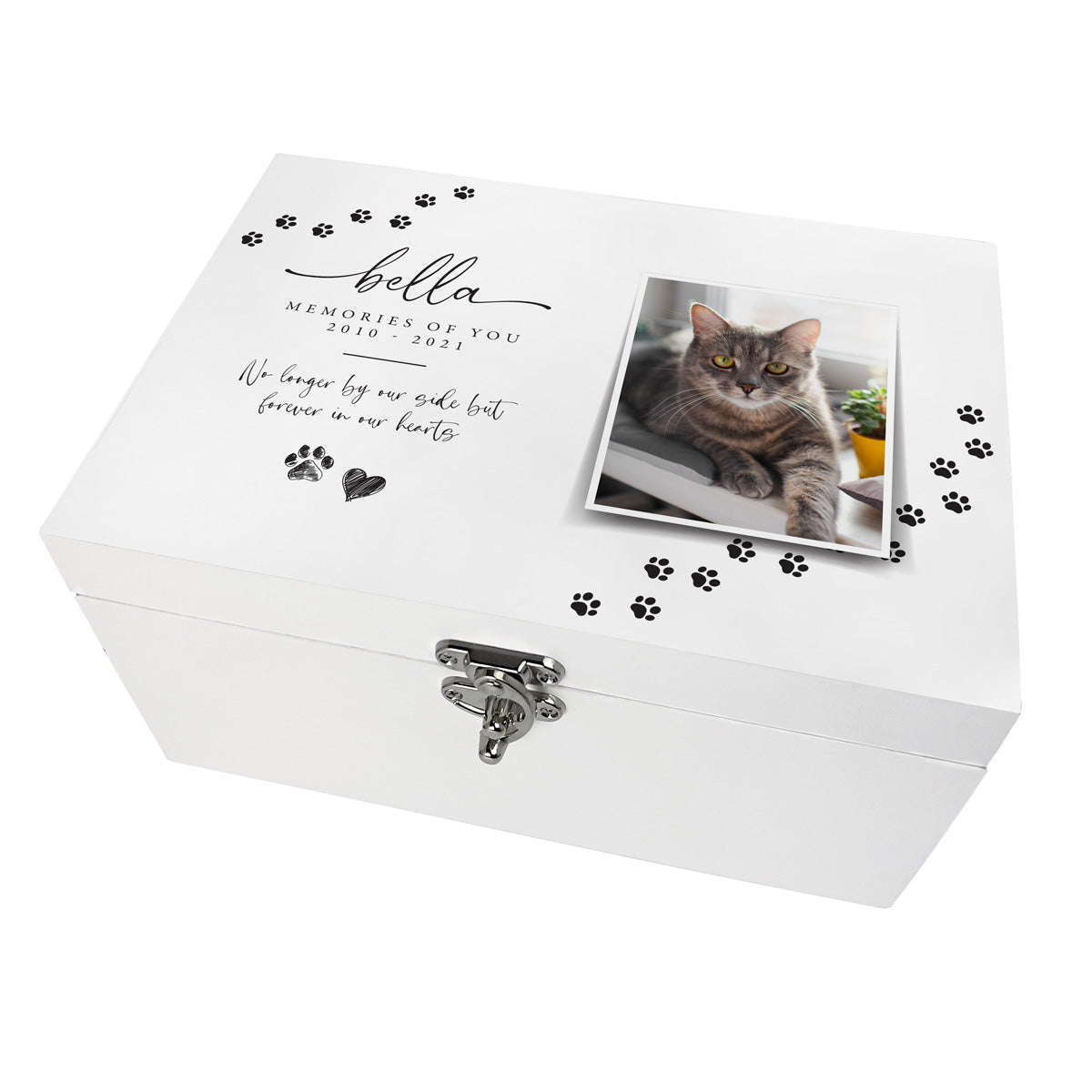 Personalised Paw Prints Pet Memorial White Wooden Photo Memory Box - 3 Sizes (22cm | 27cm | 30cm)