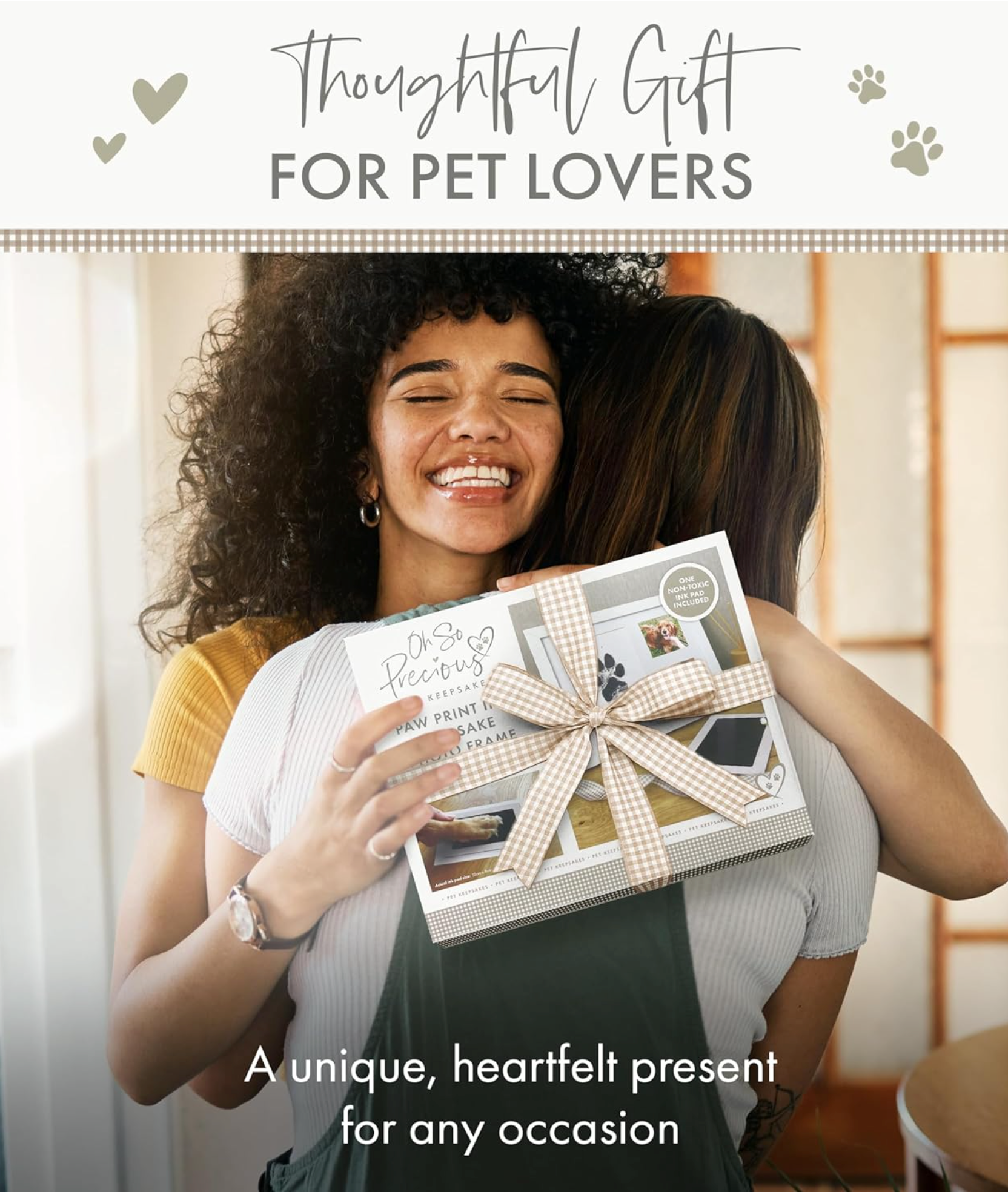 Easily create and personalise a cherished paw print keepsake with this personalised ink paw print frame kit. Whether it's a joyful new addition or a beloved companion towards the end of life, this kit invites the whole family to participate.