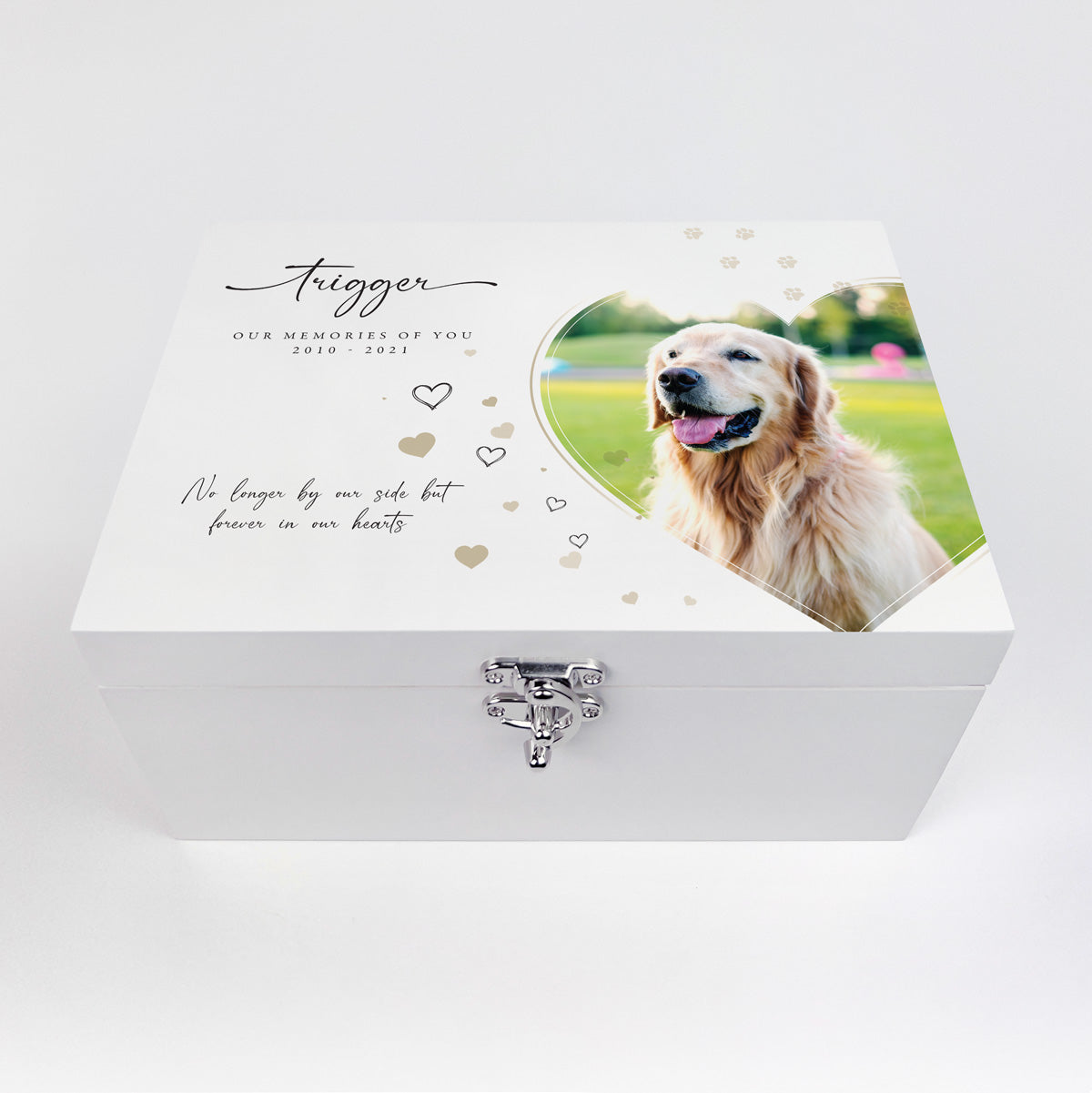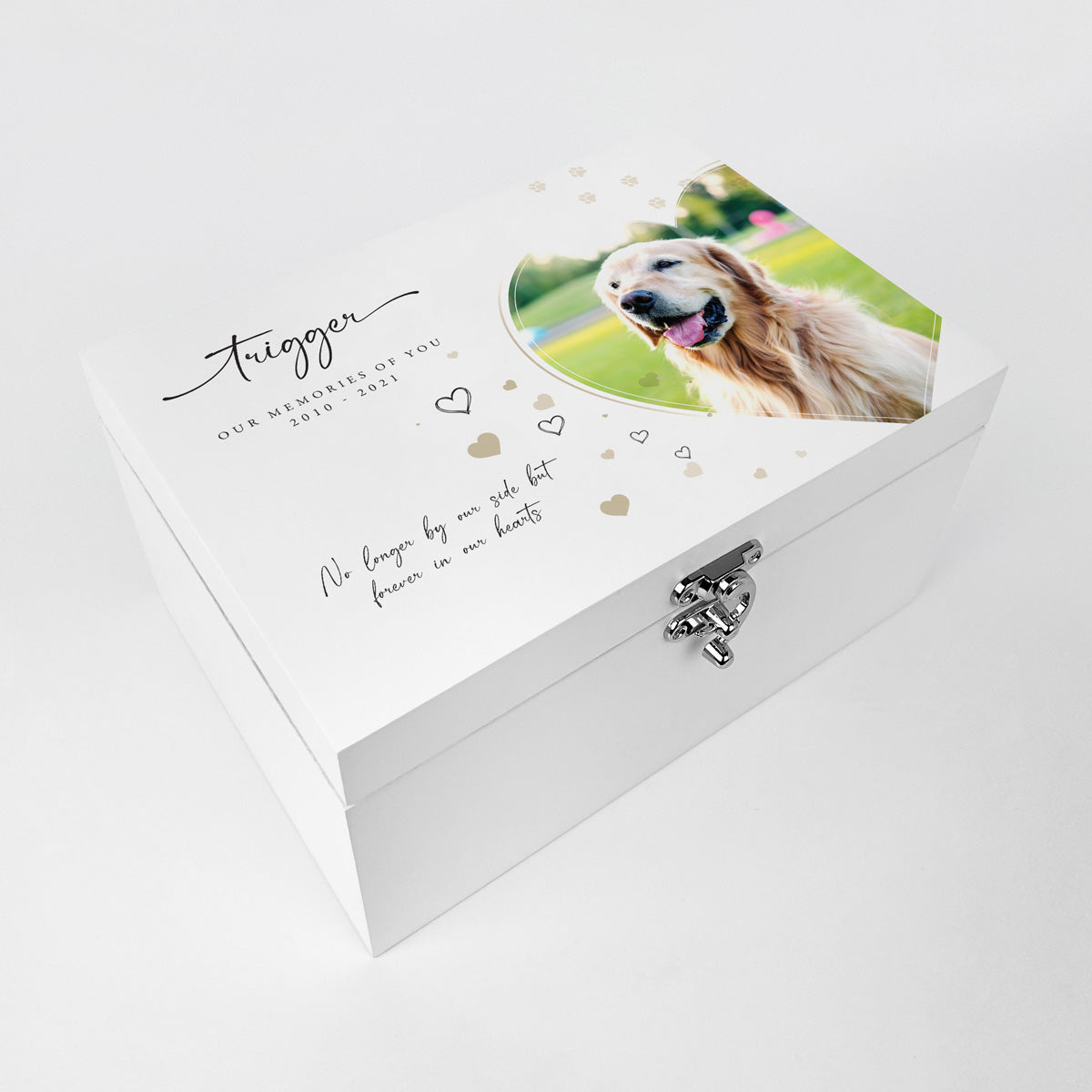 Personalised Pet Photo Memorial White Wooden Keepsake Box - 3 Sizes (22cm | 27cm | 30cm)