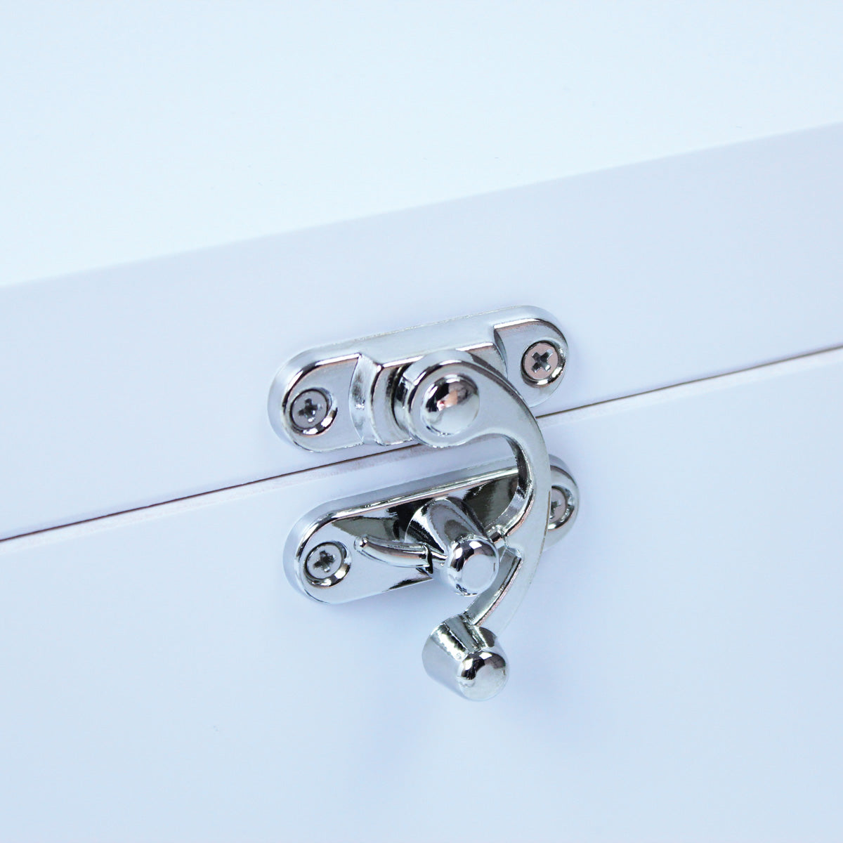 The sturdy wooden box is made from white painted solid pine wood. The boxes have chrome plated metal hinges and an elegant clasp to seal the box ensuring its contents are safe for years to come. Whether you need a roomy box for storing memories or a smaller token of congrats, we've got you covered!