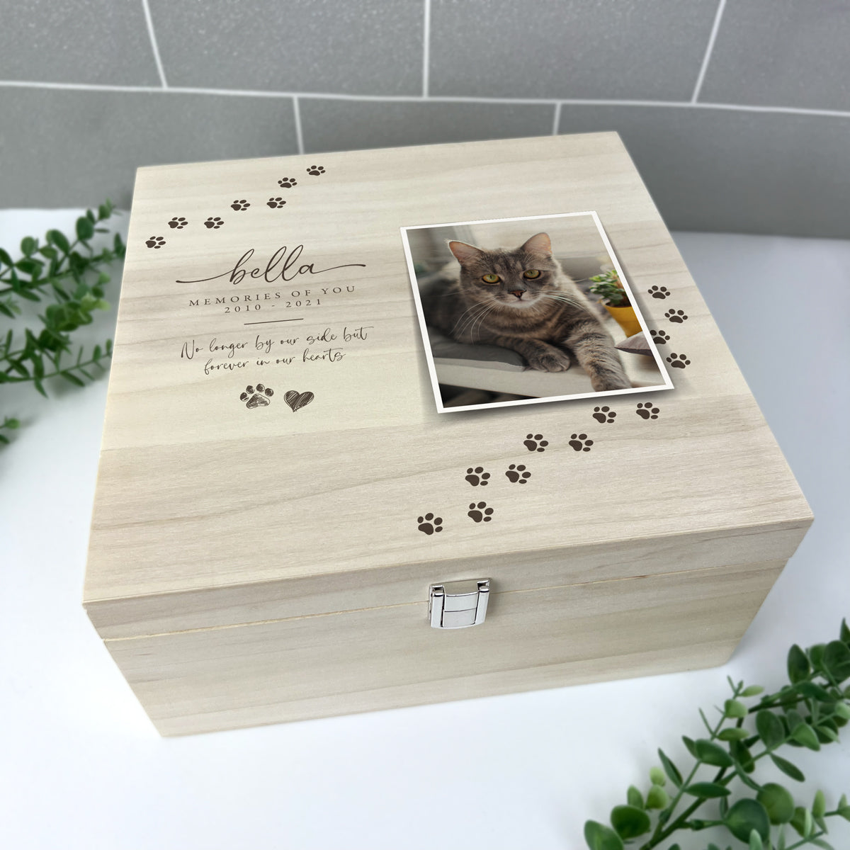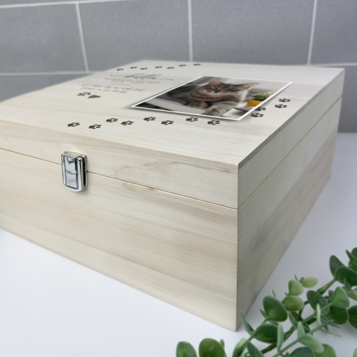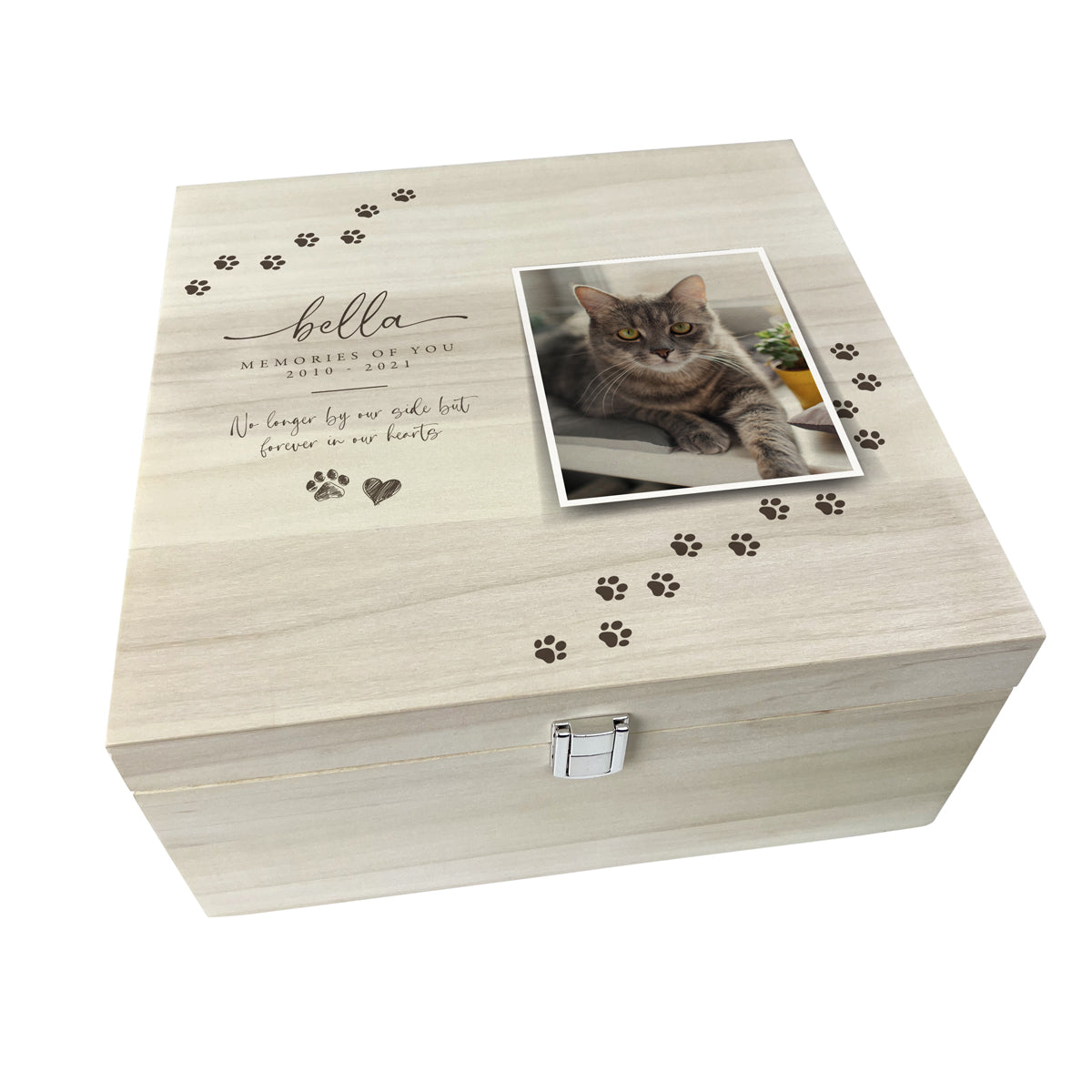 Personalised Paw Prints Square 28cm Luxury Wooden Pet Memorial Photo Memory Box