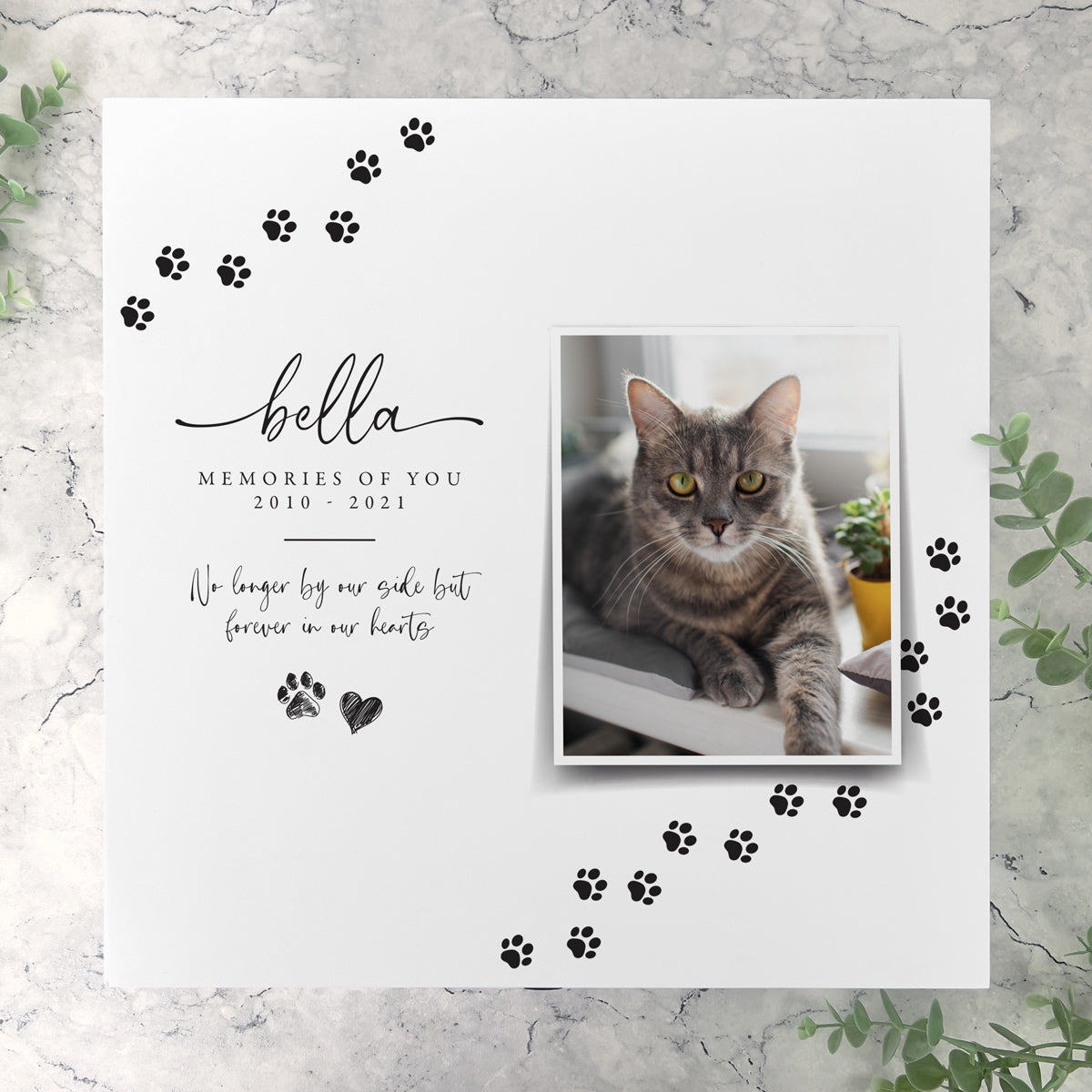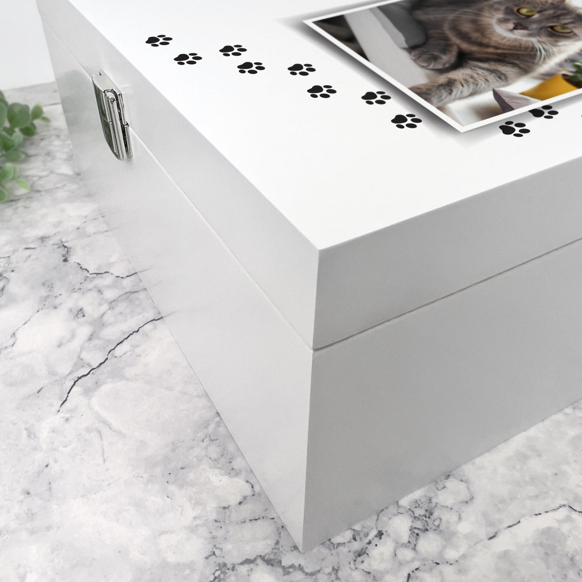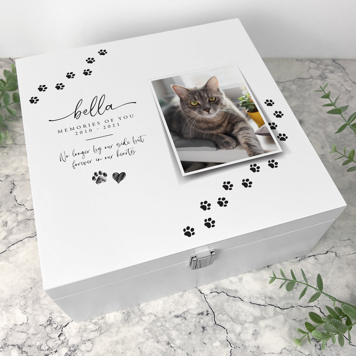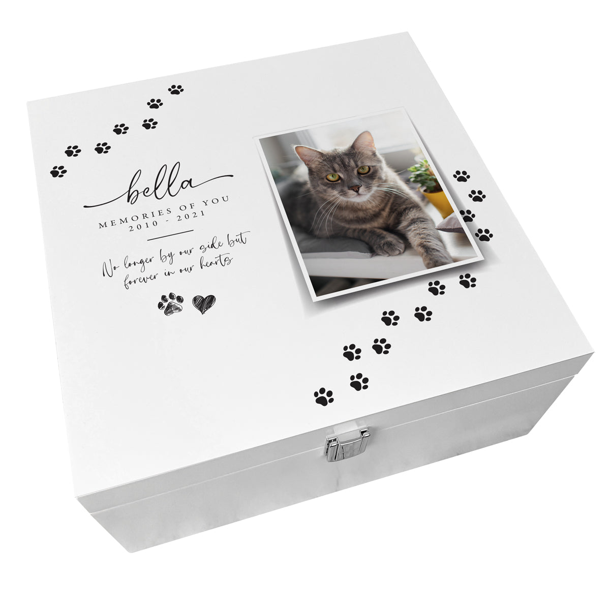 Personalised Paw Prints Square Luxury White Wooden Pet Memorial Photo Memory Box - 2 Sizes