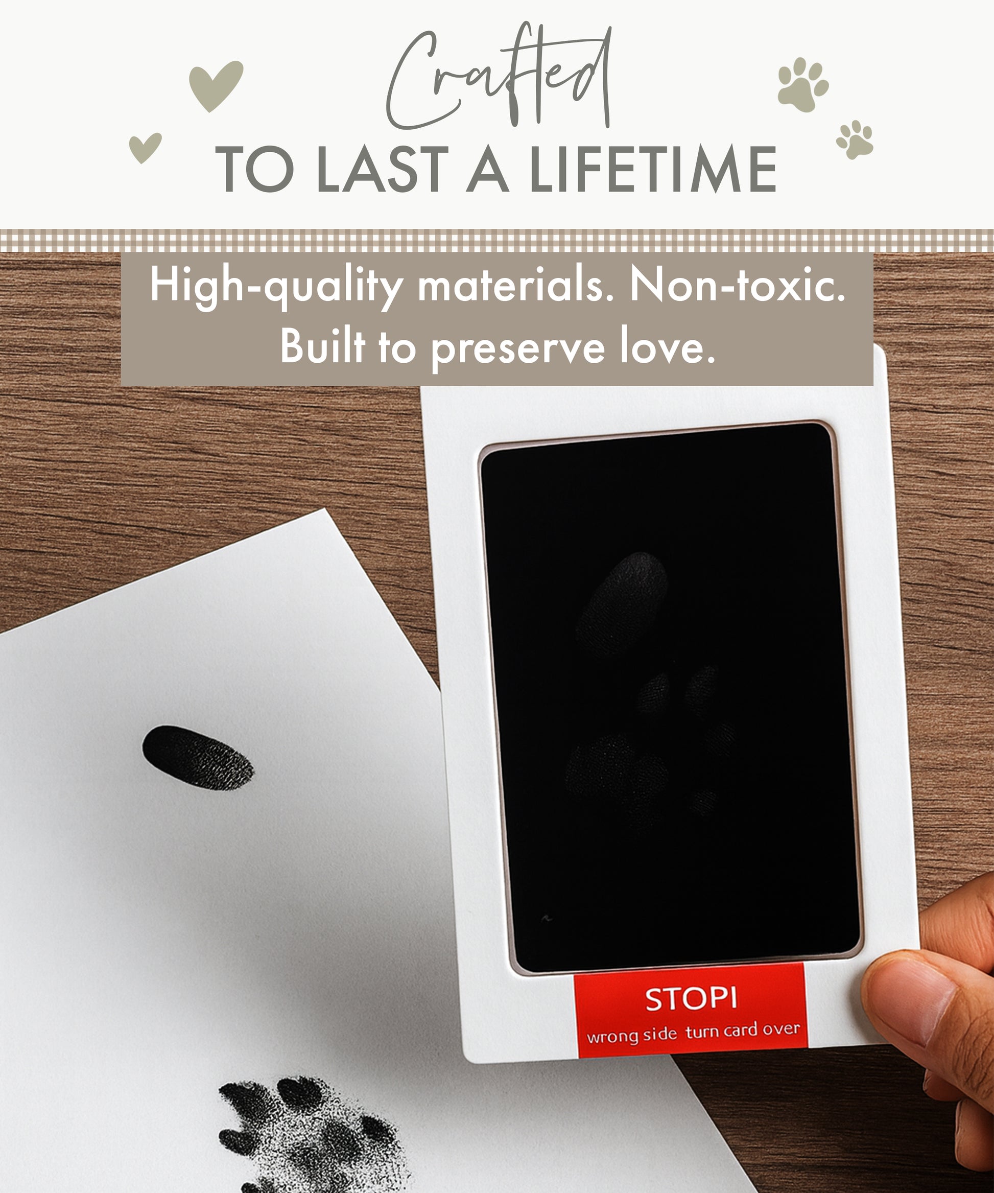 We encourage you to capture your pets first paw print to remember how little they once were, just like we do with our baby's. We know that people also like to take them towards the end of their pets life as a lovely pet keepsake to remember them by.